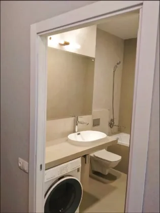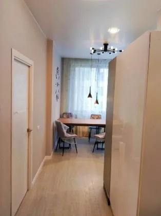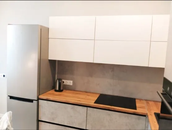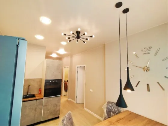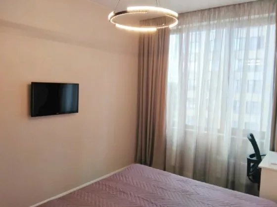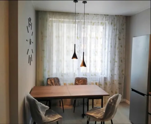 В квартире абсолютно новая современная стильная кухня с фурнитурой Блюм, стеклокерамическая варочная панель, керамическая раковина, современная духовка с массой функций, встроенная посудомойка. Новый раздвижной (до двух метров в длину) стол в стиле лофт, новые удобные мягкие стулья. В спальне вместительный шкаф с многочисленными ящиками и корзинами, много удобных мест для хранения. Кровать 160  х 200 с анатомическим матрасом (1100 независимых пружин на 1 спальное место) - гарантия комфортного сна, рабочая зона - компьютерный стол и кресло. Постельное белье, подушки, одеяло Икеа. Стиральная машина LG  с инверторным двигателем и электронным дисплеем. Очень тихая, практически бесшумная. Новая стильная сантехника. В прихожей большой шкаф, зеркало во весь рост, стильная обувница. Продумано все до мелочей для комфортного проживания.
