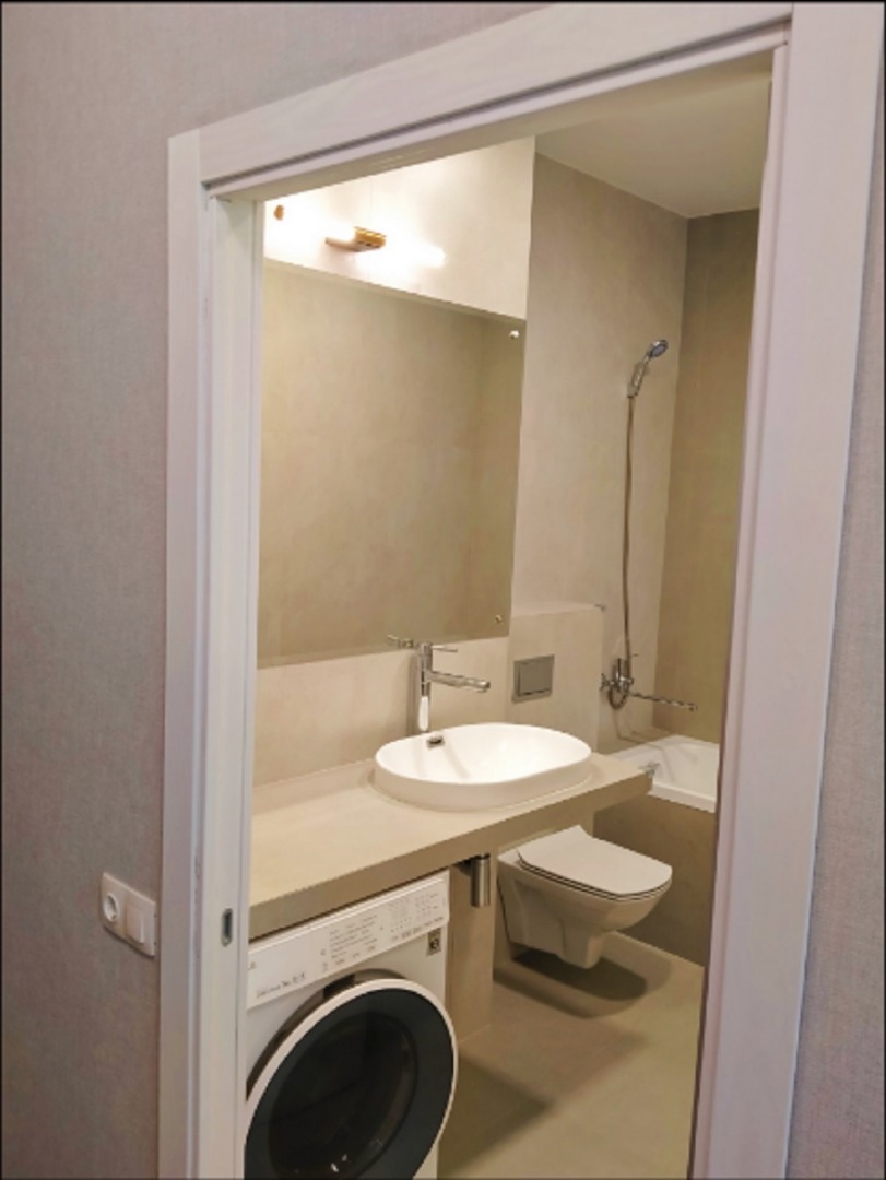 В квартире абсолютно новая современная стильная кухня с фурнитурой Блюм, стеклокерамическая варочная панель, керамическая раковина, современная духовка с массой функций, встроенная посудомойка. Новый раздвижной (до двух метров в длину) стол в стиле лофт, новые удобные мягкие стулья. В спальне вместительный шкаф с многочисленными ящиками и корзинами, много удобных мест для хранения. Кровать 160 х 200 с анатомическим матрасом (1100 независимых пружин на 1 спальное место) - гарантия комфортного сна, рабочая зона - компьютерный стол и кресло. Постельное белье, подушки, одеяло Икеа. Стиральная машина LG с инверторным двигателем и электронным дисплеем. Очень тихая, практически бесшумная. Новая стильная сантехника. В прихожей большой шкаф, зеркало во весь рост, стильная обувница. Продумано все до мелочей для комфортного проживания.